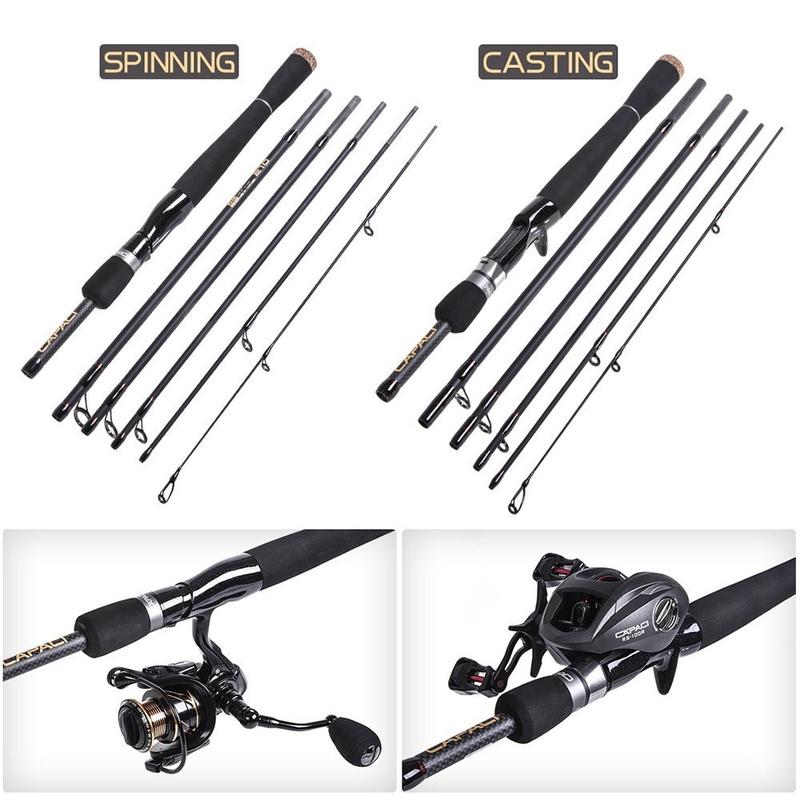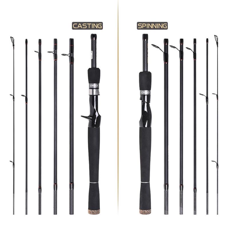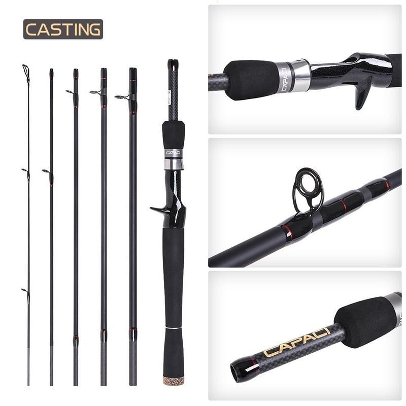 • Capici Carbon Fiber Travel Casting Fishing Rod 2.1 m - 6-Section Lightweight Hand Pole