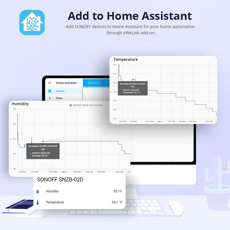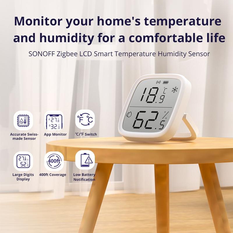 Contrôlez la température de votre intérieur grâce au SONOFF SNZB-02D. Ce capteur de température et d'humidité ZigBee 3.0 affiche les mesures en temps réel sur son grand écran LCD tout en envoyant des mises à jour à votre smartphone via l'application. Définissez votre plage de confort préférée et recevez des alertes instantanées lorsque les conditions changent, pour créer un environnement domestique plus sain et plus confortable.