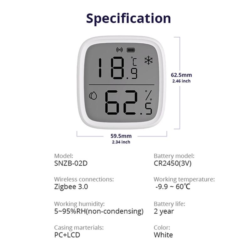 Capteur intelligent de température et d'humidité Sonoff SNZB-02D ZigBee 3.0 avec écran LCD - CR2450 inclus