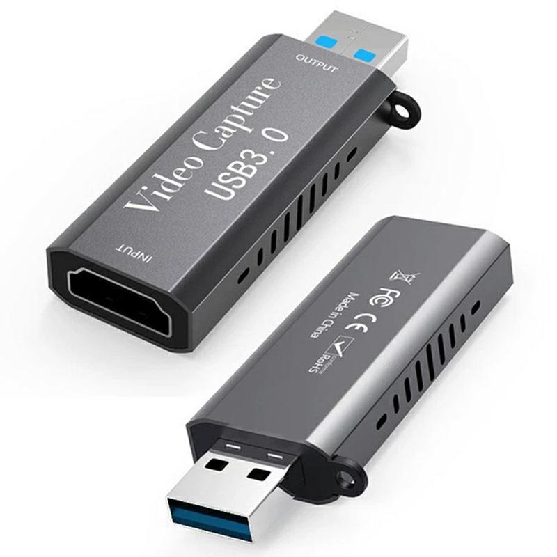 • Carte de capture vidéo HU-07 HDMI vers USB 3.0 - Entrée 4K, adaptateur de capture 1080p 60 ips pour PS4, Xbox, Switch, appareil photo et streaming PC