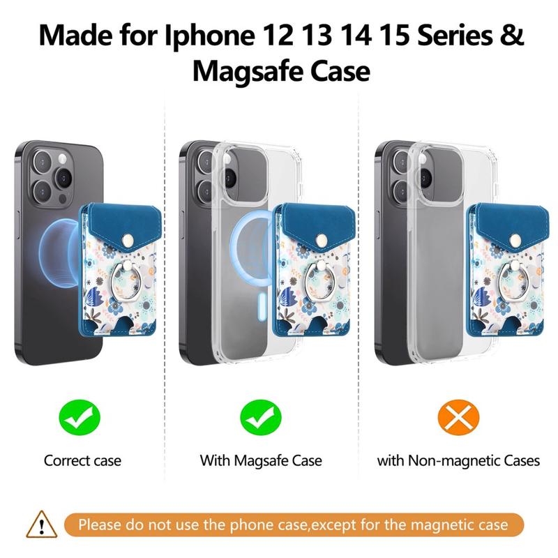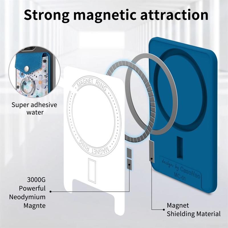 • CaseNeo MC-W3 Porte-cartes magnétique avec anneau - Portefeuille à motifs compatible avec MagSafe
