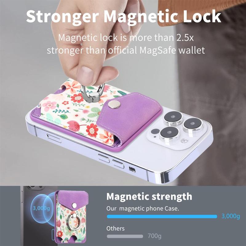 CaseNeo MC-W3 Porte-cartes magnétique avec anneau - Portefeuille à motifs compatible avec MagSafe