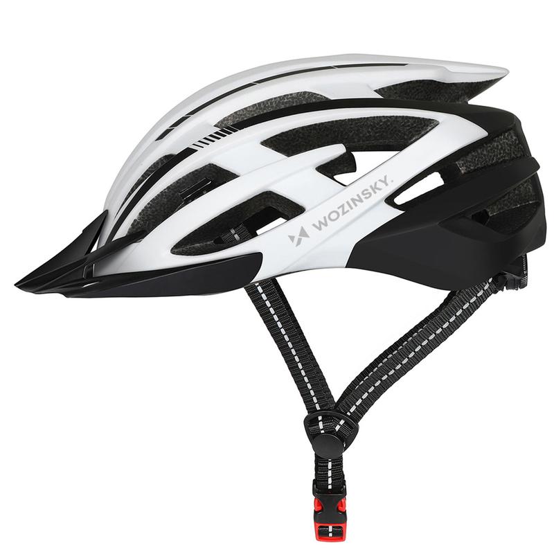 Casque de vélo VTT Wozinsky avec feu arrière LED USB - M - Blanc / Noir