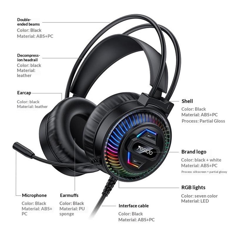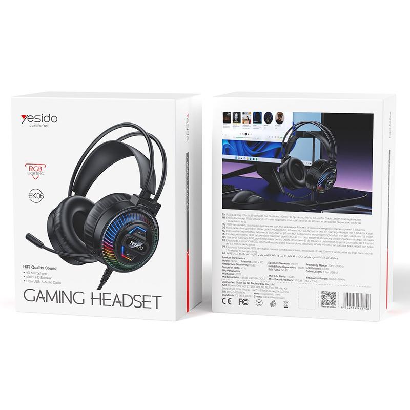 Le casque de jeu filaire RGB Yesido EK06 est conçu pour les joueurs à la recherche d'un son clair, d'un confort optimal et d'une expérience de jeu plus dynamique. Doté de haut-parleurs audio HD de 40 mm, d'effets d'éclairage RGB et d'un microphone omnidirectionnel, ce casque constitue un choix pratique pour le jeu, le chat vocal, le streaming et l'utilisation quotidienne de l'ordinateur. Sa connexion filaire USB-A offre des performances stables, ce qui le rend idéal pour les sessions de jeu sur PC, à la maison ou au bureau.
