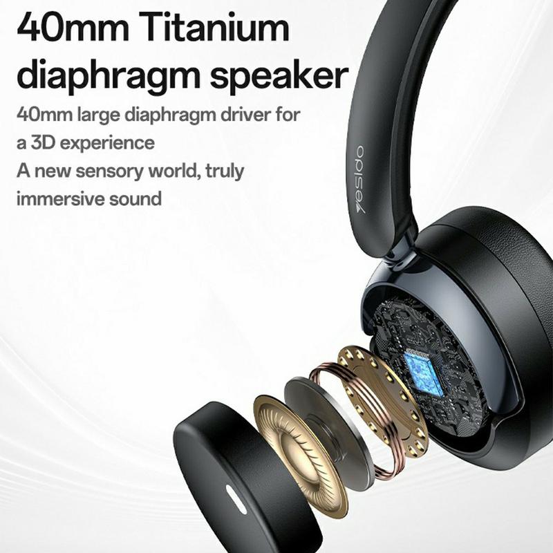 Casque sans fil Yesido EP11 avec ANC+ENC - BT 5.4, haut-parleurs en titane 40 mm, autonomie de 30 heures, prise jack 3,5 mm, Type-C