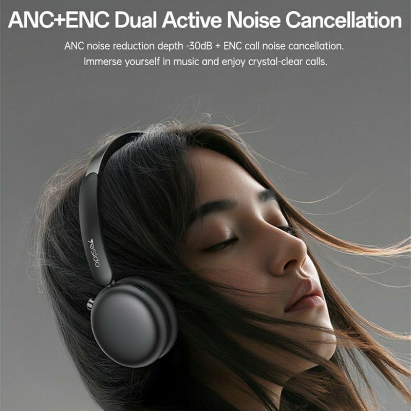 Casque sans fil Yesido EP13 avec ANC+ENC - Haut-parleurs en titane de 40 mm, batterie d'une autonomie de 50 heures, BT 5.3, mode jeu, commande rotative