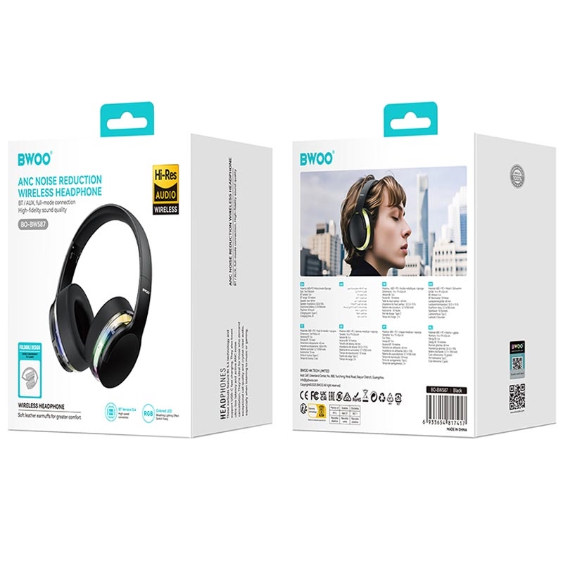 - Casque sans fil supra-auriculaire BWOO avec ANC et lumières RGB