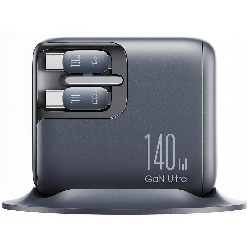 Chargeur de bureau Joyroom JR-TRD01 Podix 140W GaN avec câbles USB-C rétractables - Gris