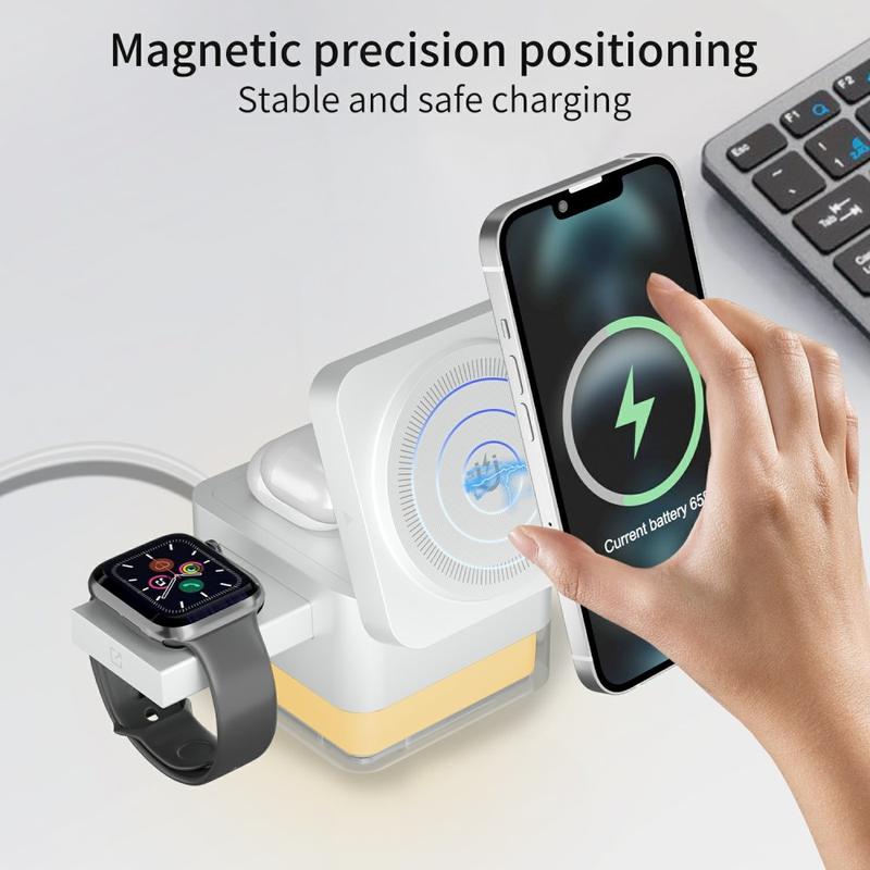 Le S6 est un excellent choix pour les utilisateurs qui recherchent une solution de recharge plus épurée et plus pratique pour plusieurs appareils Apple. Son design pliable permet de gagner de la place, tandis que le chargeur magnétique pour téléphone et la lumière d'ambiance intégrée le rendent à la fois utile et élégant pour un usage quotidien.