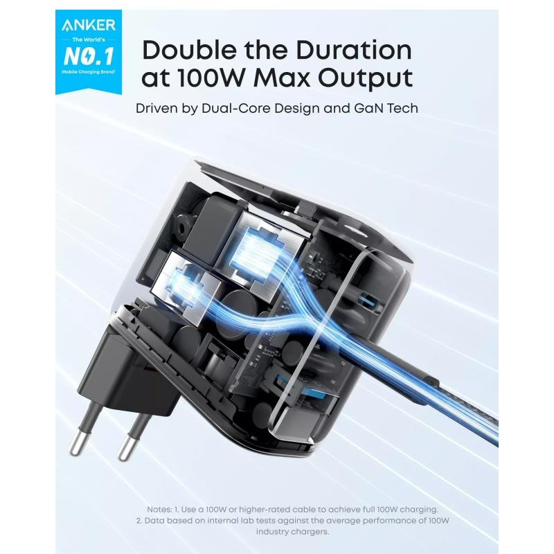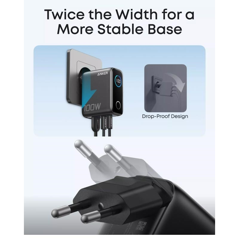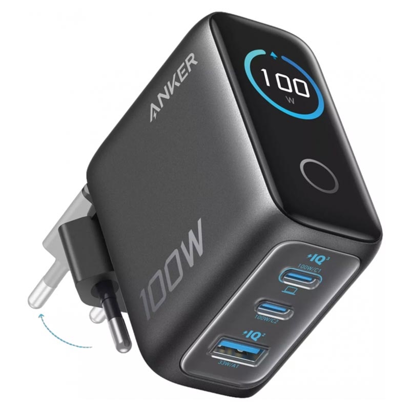 Le chargeur mural Anker 100W GaN avec écran intelligent est une solution de recharge puissante et compacte, conçue pour les utilisateurs qui ont besoin de recharger rapidement et efficacement plusieurs appareils à la fois. Doté de 2 ports USB-C, d’un port USB-A, de la technologie GaN avancée et d’un écran numérique intégré, il vous offre un moyen plus intelligent et plus pratique d’alimenter vos ordinateurs portables, smartphones, tablettes, écouteurs et autres appareils du quotidien.