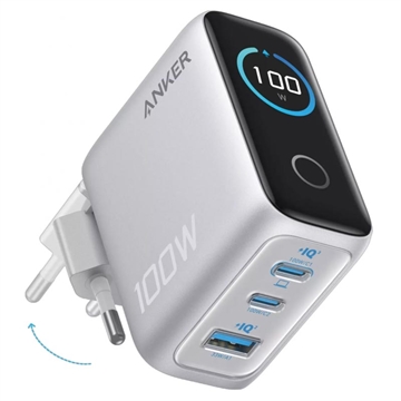 Chargeur mural Anker 100W GaN avec écran intelligent - Argent