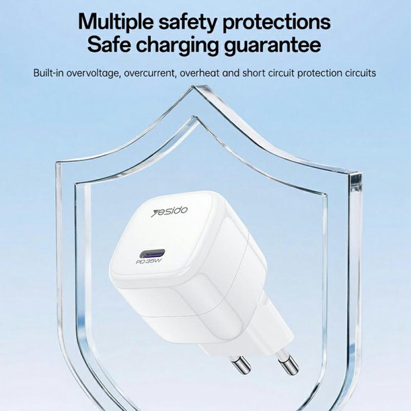 Chargeur mural USB-C PD Yesido YC103 35W GaN - Adaptateur secteur compact à charge rapide avec protection de sécurité
