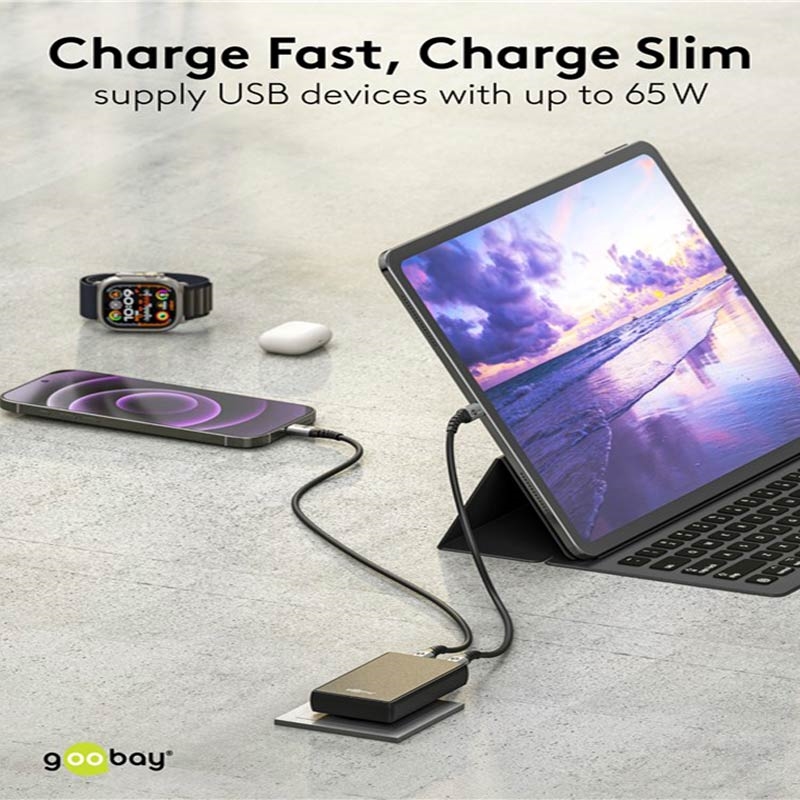 65W USB-C Power Delivery pour les ordinateurs portables et les tablettes