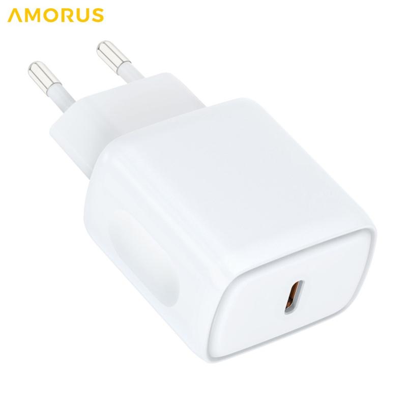 Chargeur mural rapide USB-C Amorus PD 20 W – Adaptateur secteur intelligent avec PPS, conception résistante au feu – Prise UE