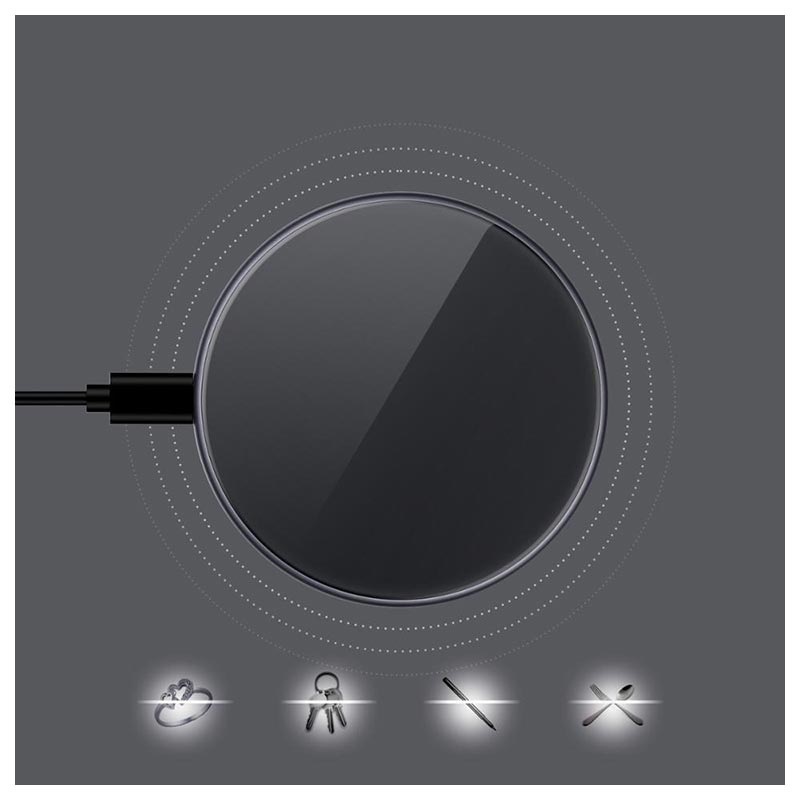 Détection des objets étrangers. Le chargeur sans fil détecte immédiatement tout objet inconnu comme les clés, les stylos, les bijoux, etc. et arrête le processus de charge pour éviter la surchauffe et pour garder vos précieux téléphones en sécurité.