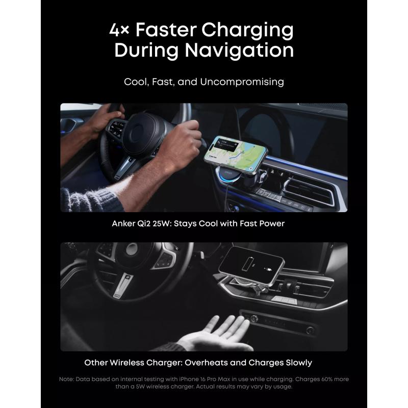 • Chargeur sans fil MagSafe Anker Prime Qi2 MagGo 25W / support pour voiture avec refroidissement TEC