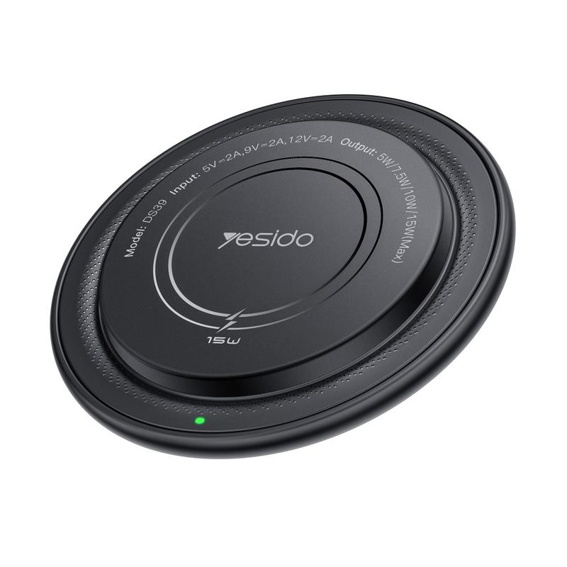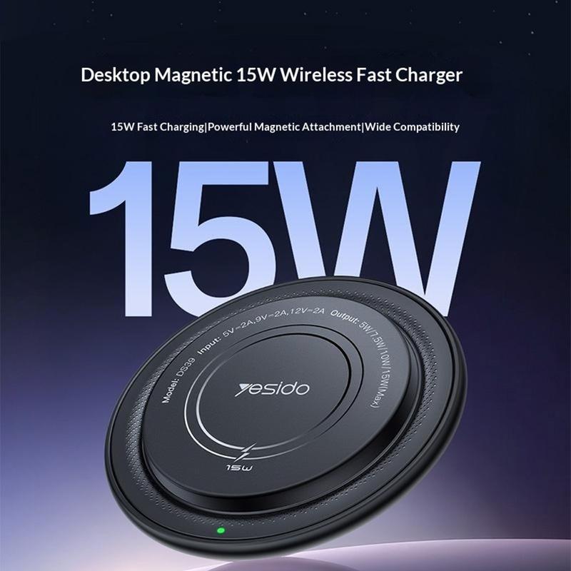 • Chargeur sans fil magnétique Yesido DS39 15W - Tapis de recharge rapide rond de bureau pour smartphones et écouteurs sans fil