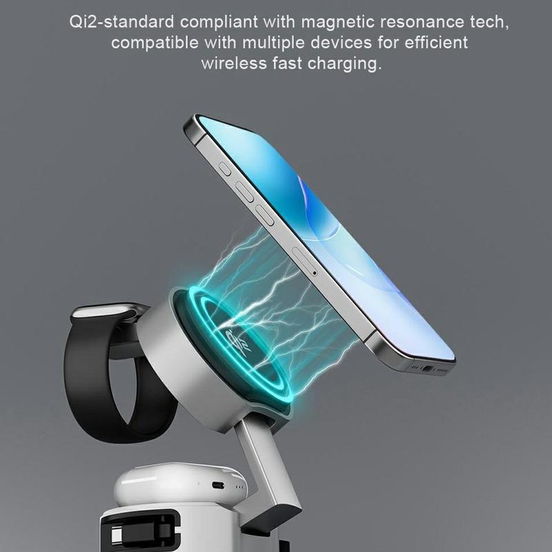 • Chargeur sans fil magnétique pliable 3-en-1 B30 - Station de recharge rapide Qi2 15W avec câble USB-C rétractable de 80 cm pour téléphone, montre et écouteurs