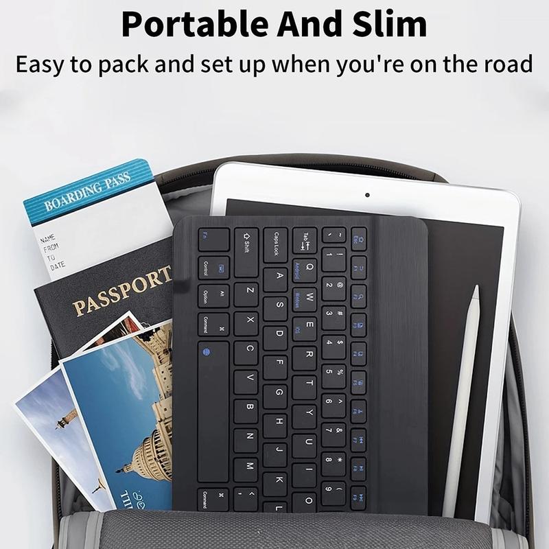 Avec une épaisseur de seulement 0,6 cm et un poids de seulement 114 g, le clavier est facile à transporter dans un sac à dos, une sacoche d'ordinateur portable ou un sac à main. Il est parfait pour travailler en déplacement, étudier, voyager ou utiliser des tablettes.