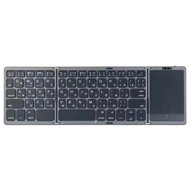 Clavier sans fil pliable B089 avec pavé tactile (81 touches) - QWERTY, compatible Bluetooth multi-appareils, rechargeable via USB-C, touches silencieuses