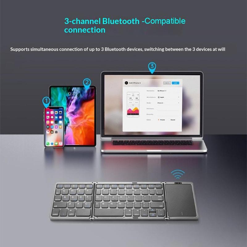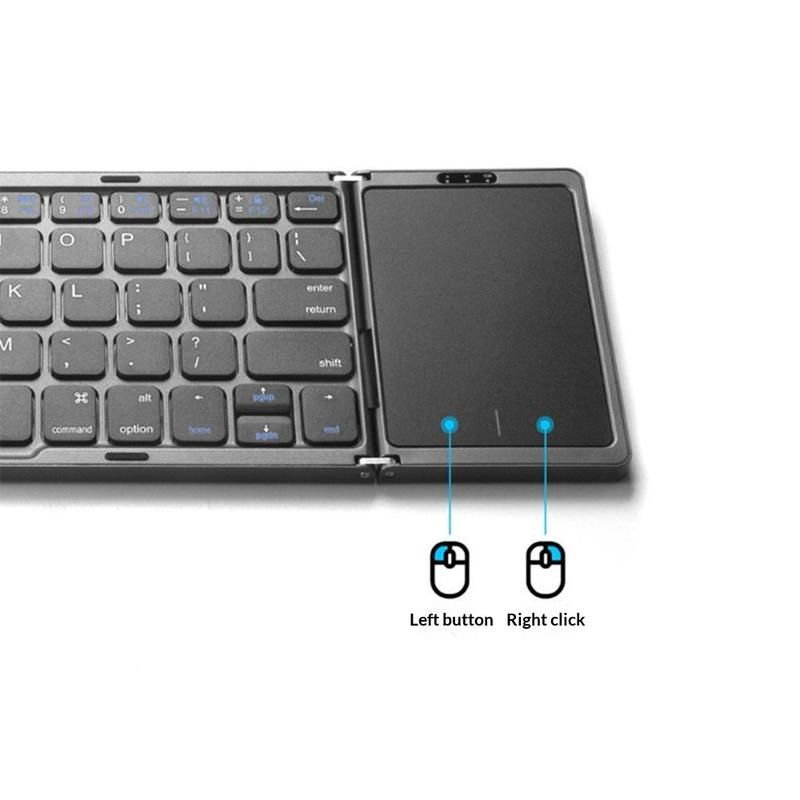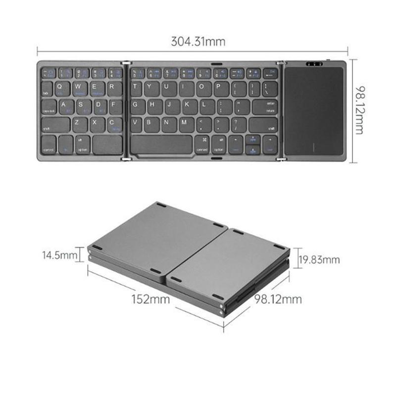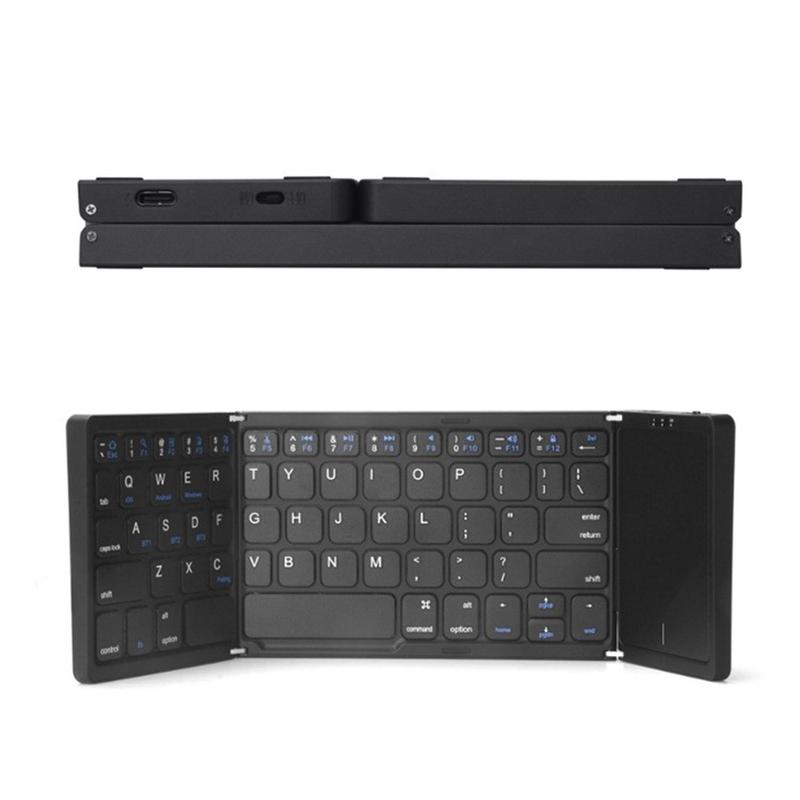 Clavier sans fil pliable B089 avec pavé tactile (81 touches) - QWERTY, compatible Bluetooth multi-appareils, rechargeable via USB-C, touches silencieuses