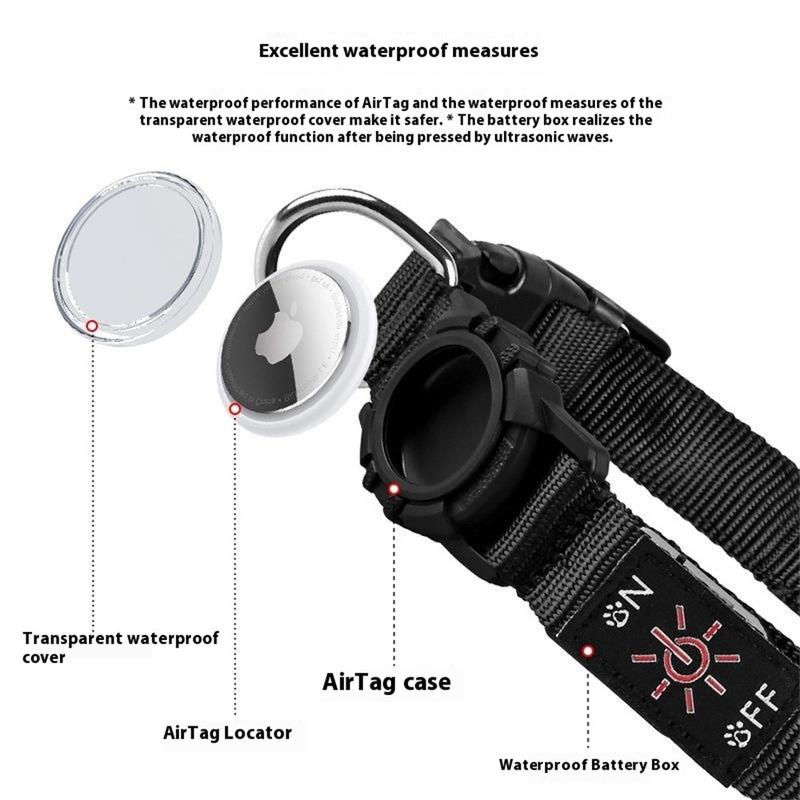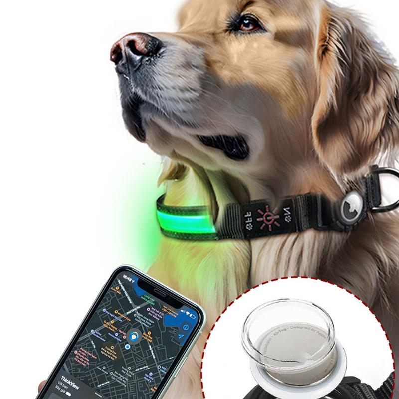 • Collier LED pour chien avec étui pour Apple AirTag 1/2 - Collier antiperte étanche avec lumière rechargeable