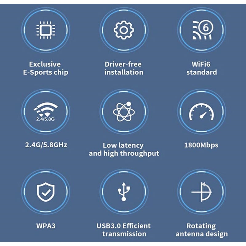 Améliorez votre PC ou votre ordinateur portable avec une connectivité ultra-rapide et stable grâce à l'adaptateur USB COMFAST CF-952AX V2 WiFi 6. Cet adaptateur plug-and-play offre une vitesse bi-bande allant jusqu'à 1800Mbps et garantit une faible latence et une forte couverture du signal - parfait pour le streaming, les jeux et le travail à distance.