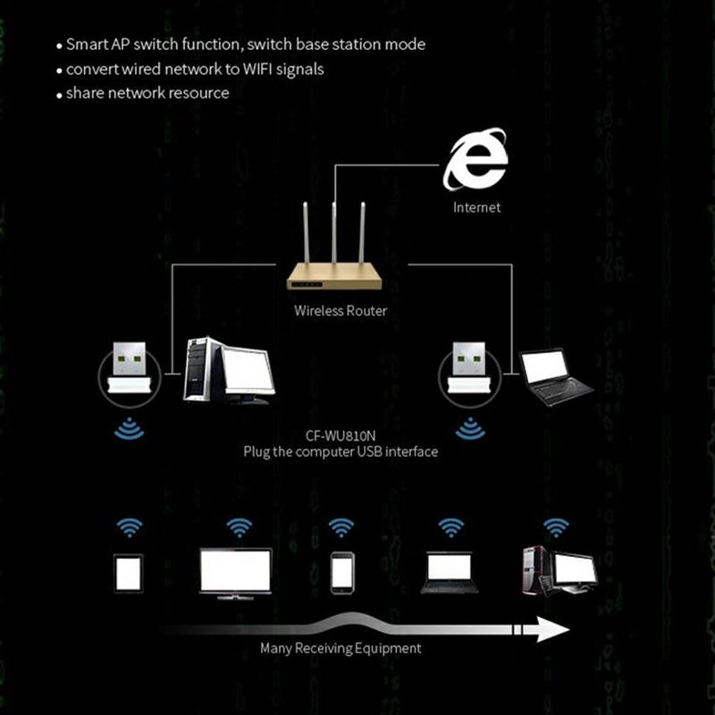 Comfast CF-WU810N Adaptateur Wi-Fi USB double bande - Carte réseau sans fil 150 Mbps pour ordinateur de bureau et ordinateur portable