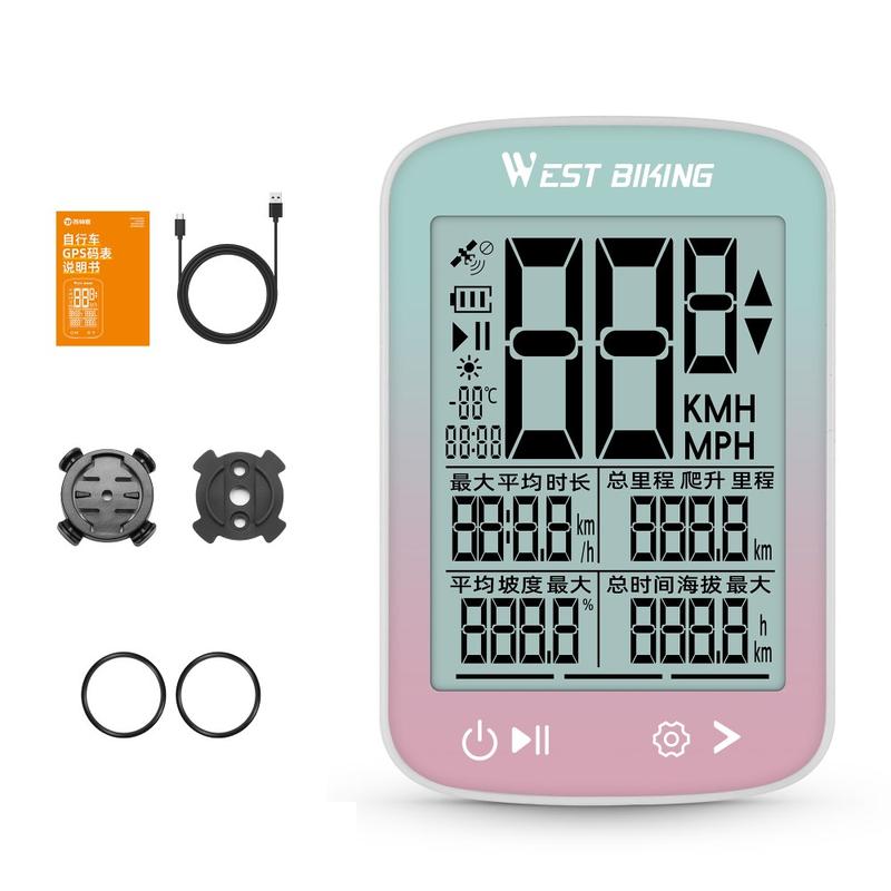 • Compteur GPS pour vélo West Biking YP0702112 - Écran LCD FSTN 2,4 pouces, GPS 5 systèmes, étanche IPX7, USB-C, 800 mAh, autonomie de plus de 20 heures