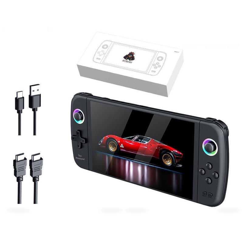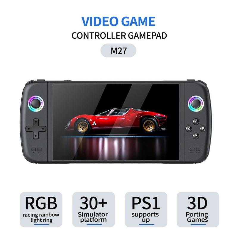 Console de jeux portable M27 7 pouces - Écran IPS, plus de 20 000 jeux classiques, éclairage RVB, sortie HD, carte TF 64 Go incluse