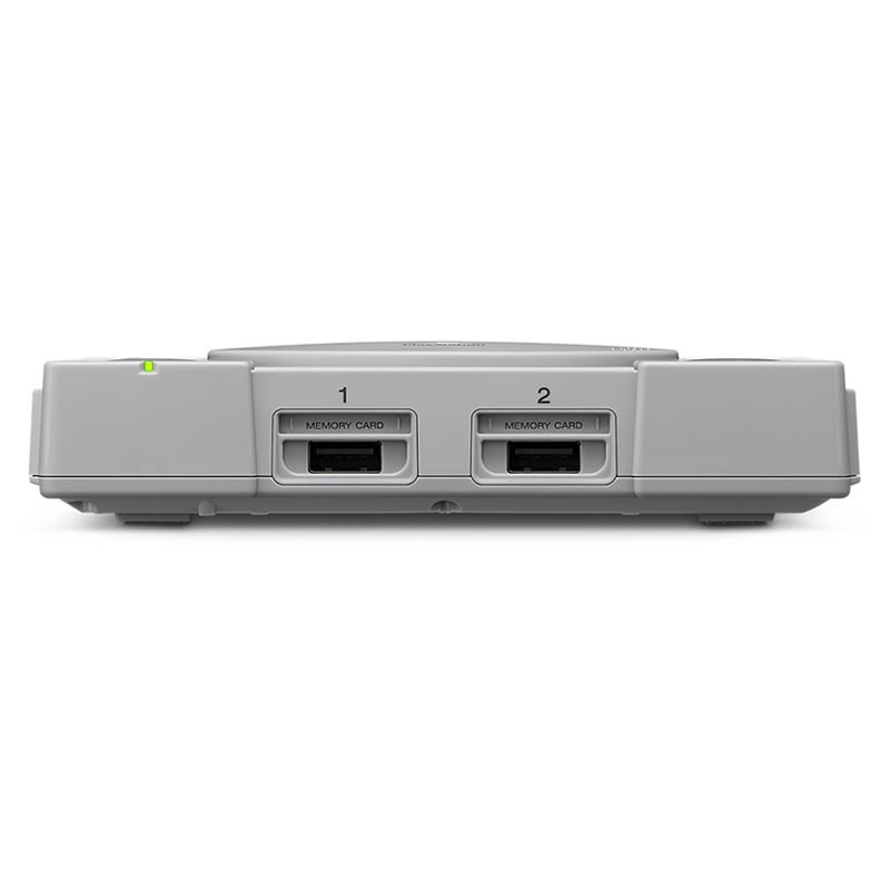 - L'ensemble inclut deux manettes Sony PlayStation Classic, et supporte la HD. De plus, la console est équipée d'une carte mémoire virtuelle qui vous permet de sauvegarder facilement vos parties.