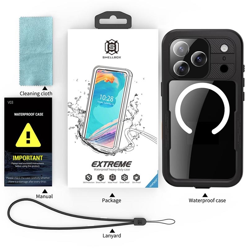 L'étui étanche Shellbox série M associe une protection robuste à une commodité moderne. Son indice de protection IP68 et sa compatibilité MagSafe en font un accessoire polyvalent pour ceux qui exigent la durabilité sans sacrifier la fonctionnalité. Que vous soyez un plongeur passionné ou que vous recherchiez une protection complète pour votre iPhone 17 Pro Max, cet étui vous offre la tranquillité d'esprit dans n'importe quel environnement.