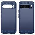 Coque Google Pixel 9 Pro XL en TPU Brossé - Fibre de Carbone - Bleue