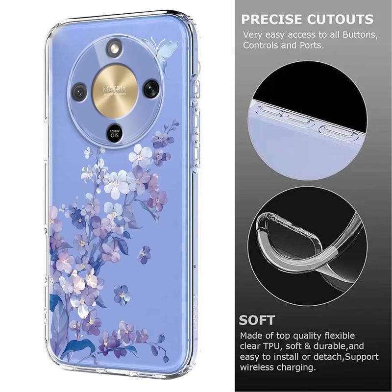 Coque Honor X70/X9d/Magic8 Lite en TPU à motif floral - Violete