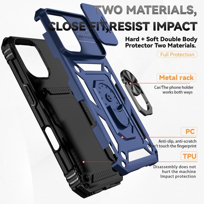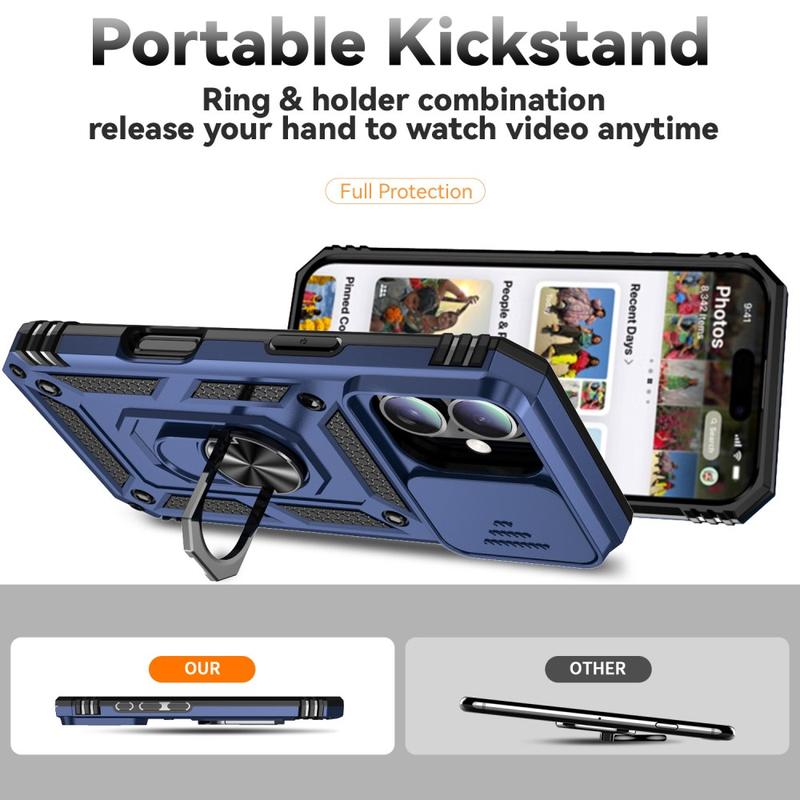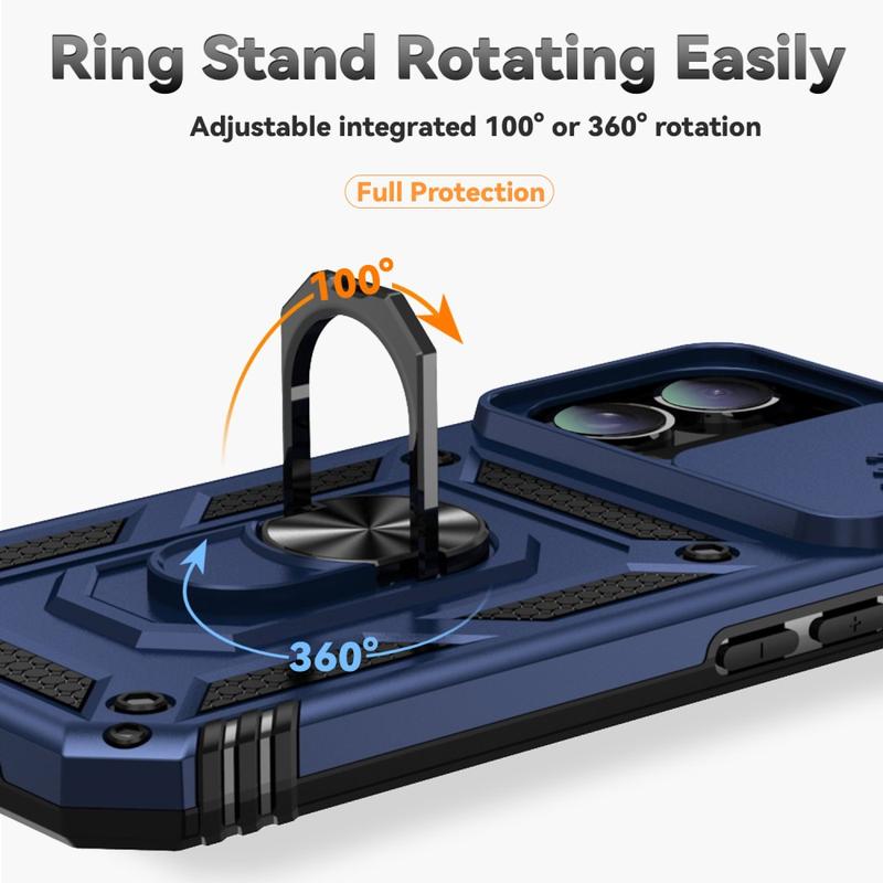 - Coque hybride à anneau rotatif avec protection d'appareil photo pour iPhone 16