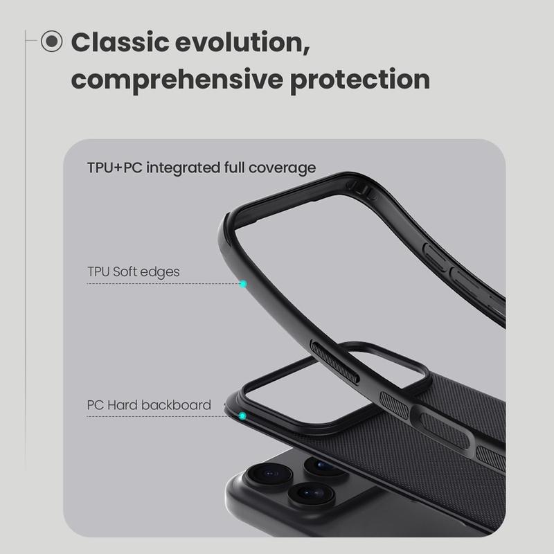 Le Nillkin a conçu la nouvelle version Pro plus puissante de la coque Super Frosted Shield pour votre précieux iPhone 17 Pro. Protection ultime contre les chutes, grâce à la conception à double couche - dos en PC avec cadre en TPU.