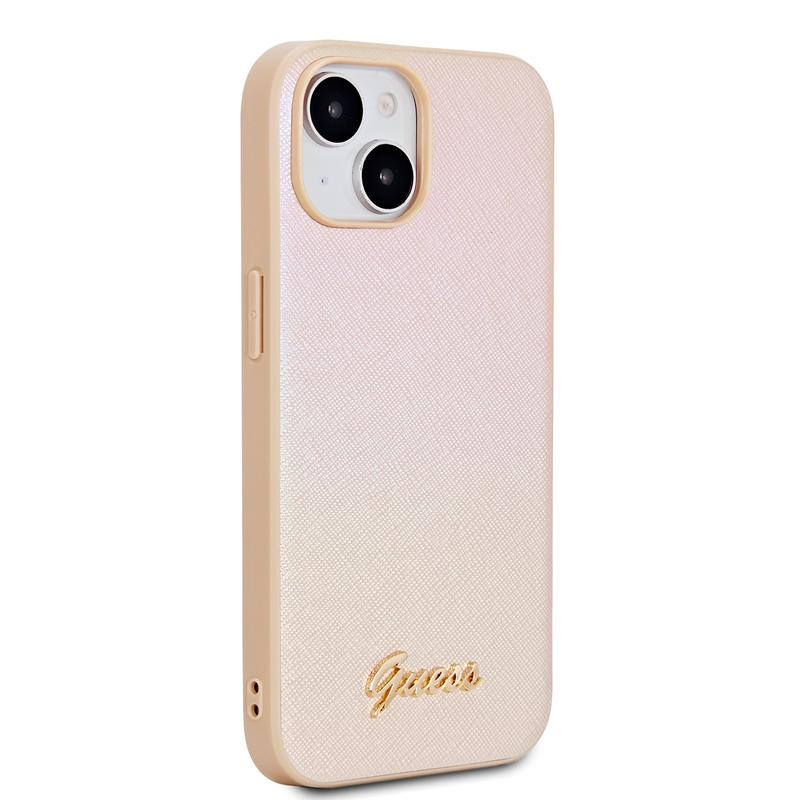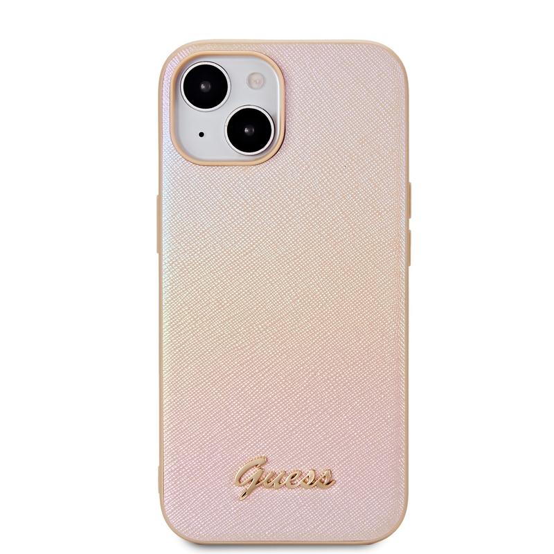 Coque hybride Guess Iridescent Metal Script pour iPhone 15