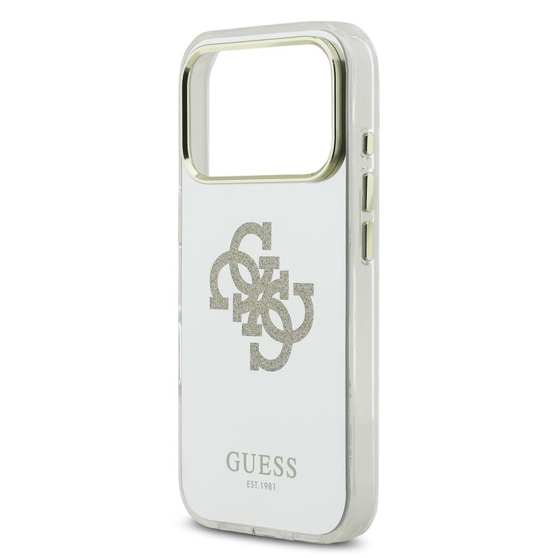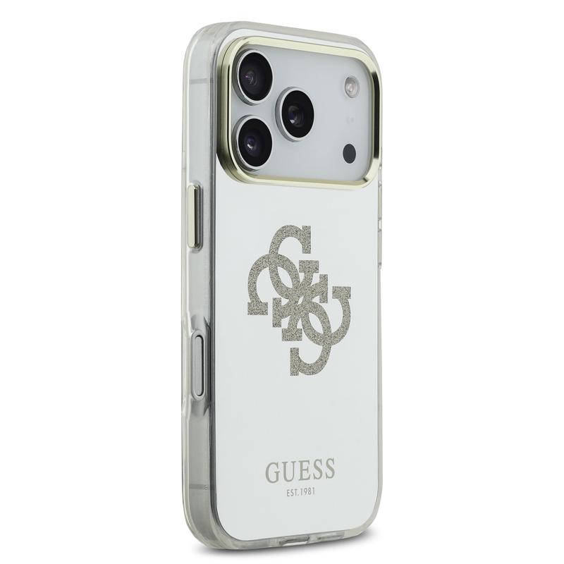• Coque hybride Guess Mirror 4G Glitter Logo pour iPhone 17 Pro - Coque arrière PC/TPU compatible MagSafe avec finition miroir