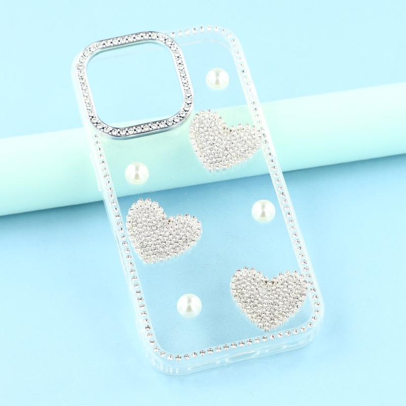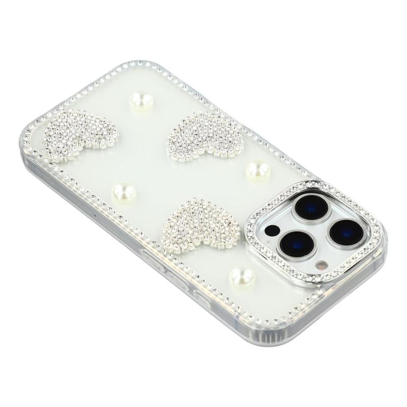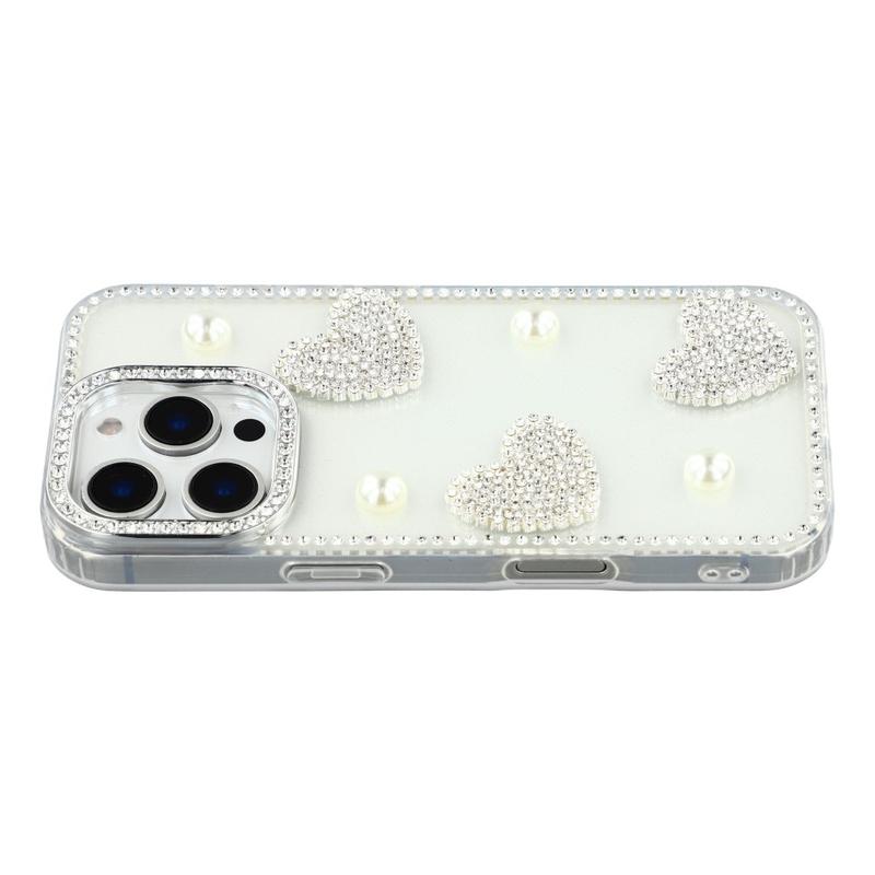 Cet étui pour iPhone 16 Pro Max allie une protection quotidienne fiable à un style glamour. Avec ses strass scintillants sur le pourtour et ses décorations en forme de cœur perlé au dos, il transforme votre iPhone 16 Pro Max en un accessoire de mode tout en le protégeant des rayures et des chocs.