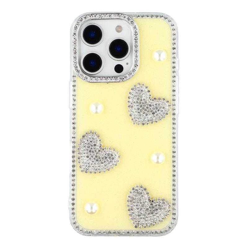 Coque hybride iPhone 16 Pro Amour étincelant et perle - Jaune