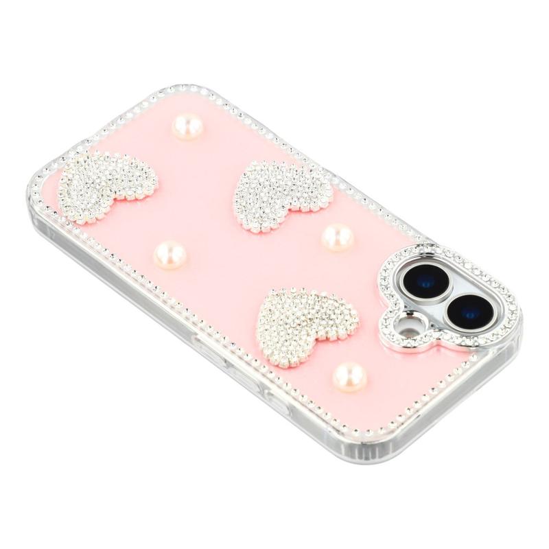 Coque hybride iPhone 16 Amour étincelant et perle - Rose