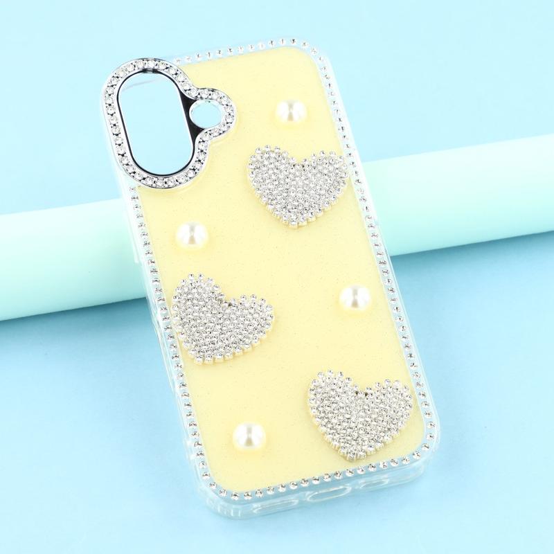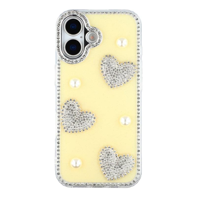 Cet étui pour iPhone 16 allie une protection quotidienne fiable à un style glamour. Avec ses strass scintillants sur le pourtour et ses décorations en forme de cœur perlé au dos, il transforme votre iPhone 16 en un accessoire de mode tout en le protégeant des rayures et des chocs.