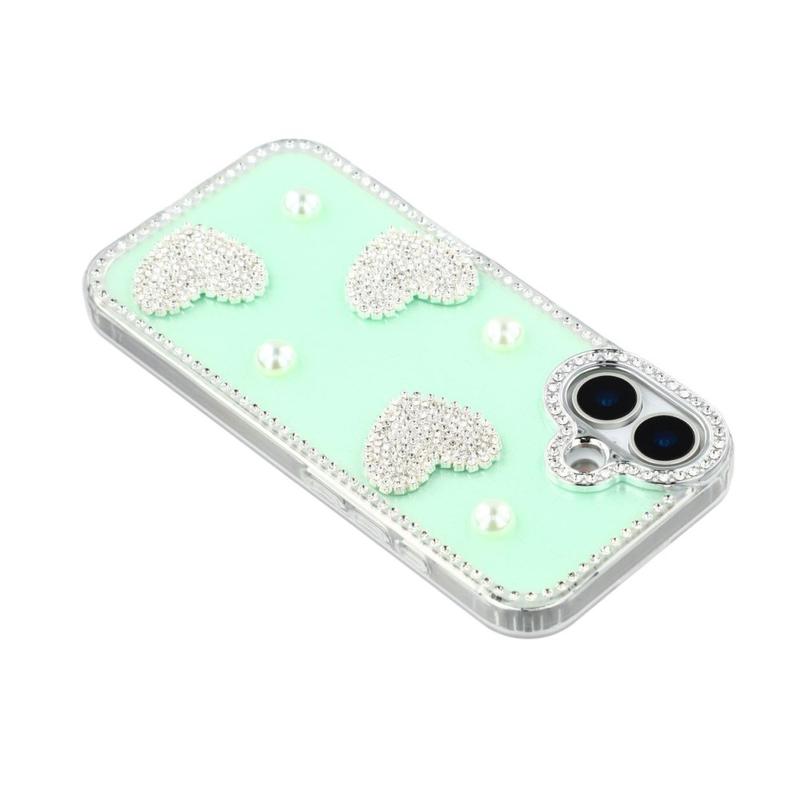 Cet étui pour iPhone 16 allie une protection quotidienne fiable à un style glamour. Avec ses strass scintillants sur le pourtour et ses décorations en forme de cœur perlé au dos, il transforme votre iPhone 16 en un accessoire de mode tout en le protégeant des rayures et des chocs.