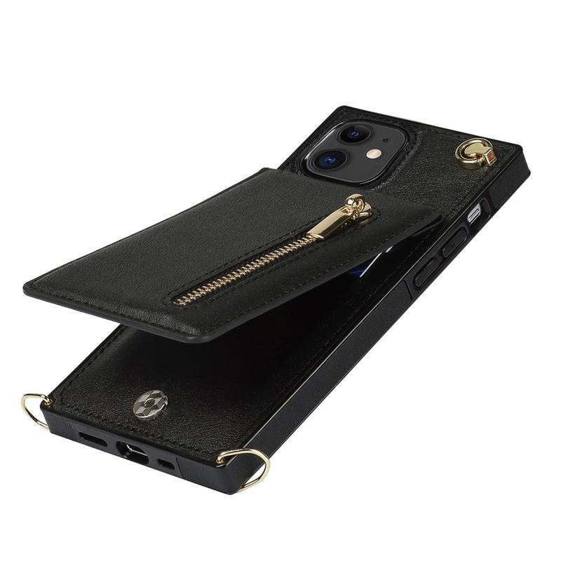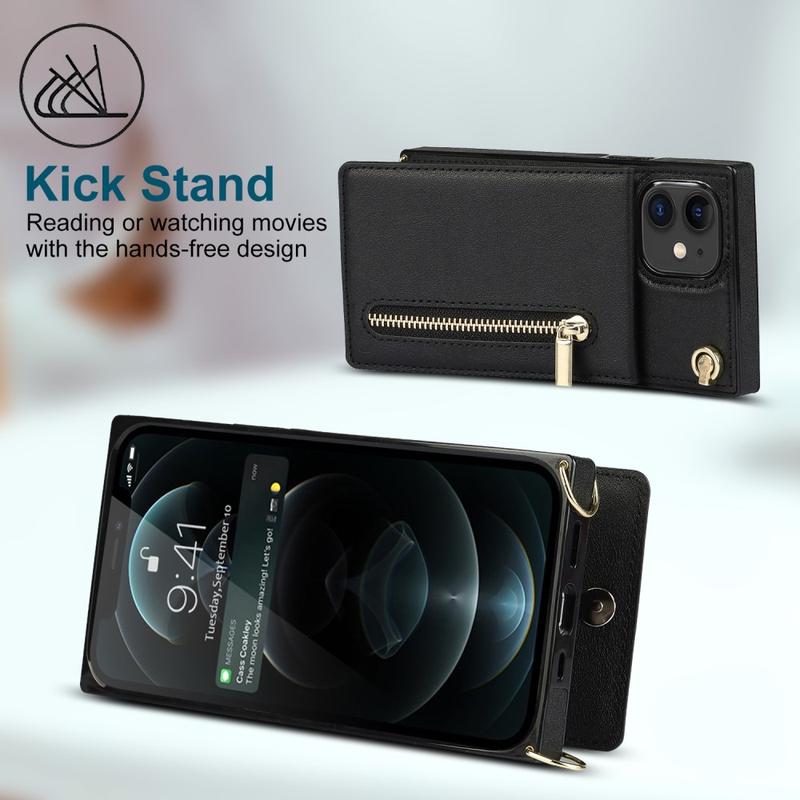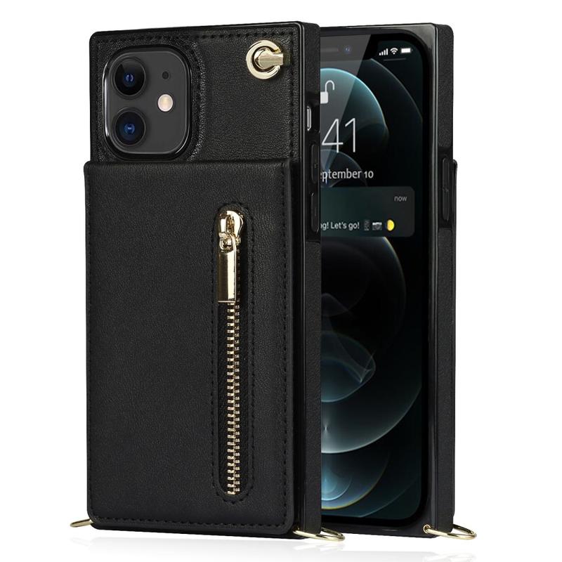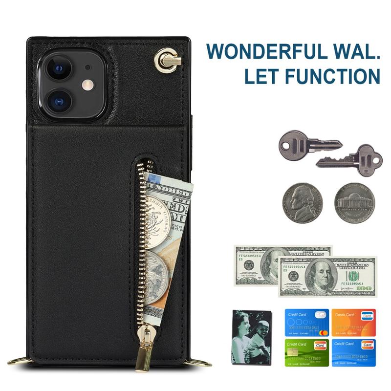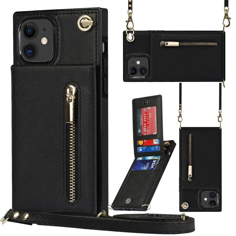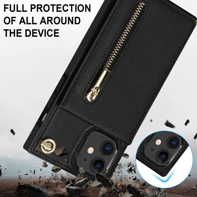 • Coque hybride avec portefeuille et dragonne pour iPhone 11