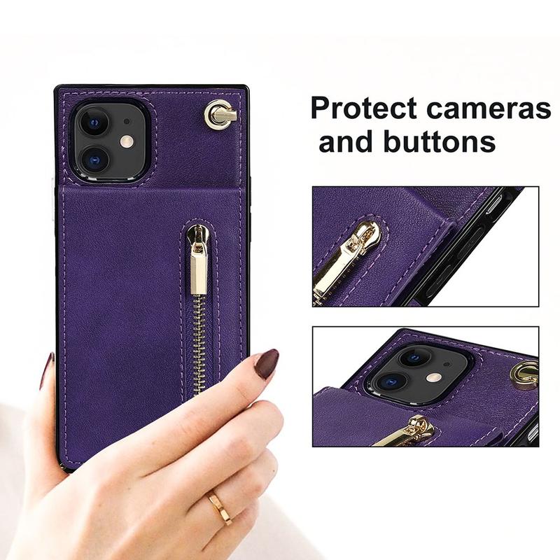 • Coque hybride avec portefeuille et dragonne pour iPhone 11