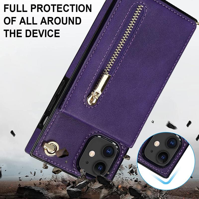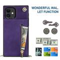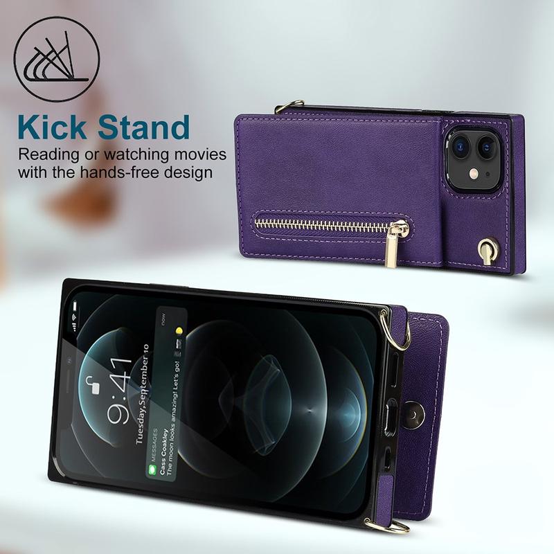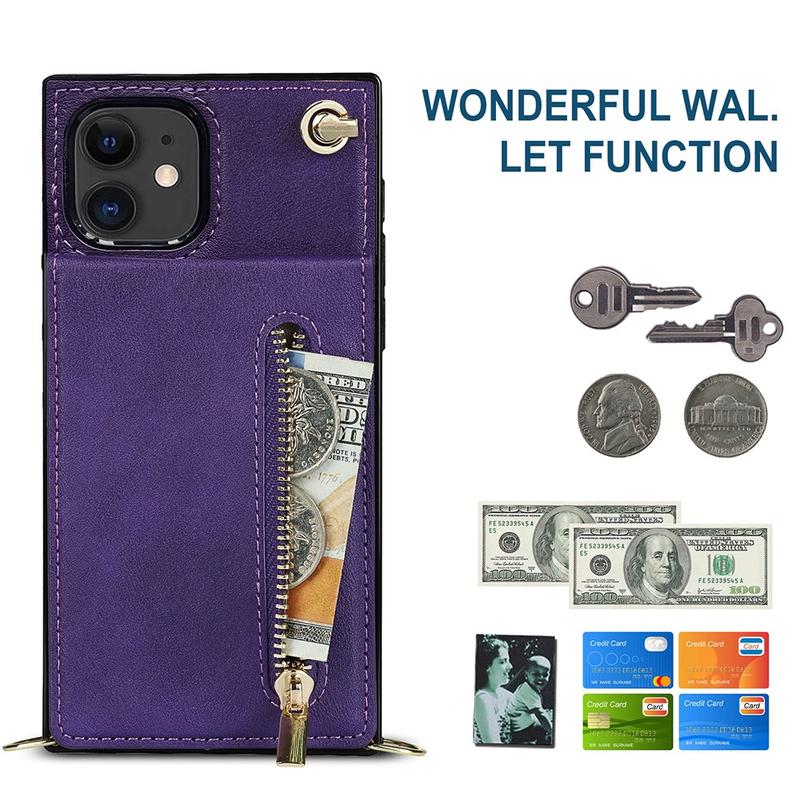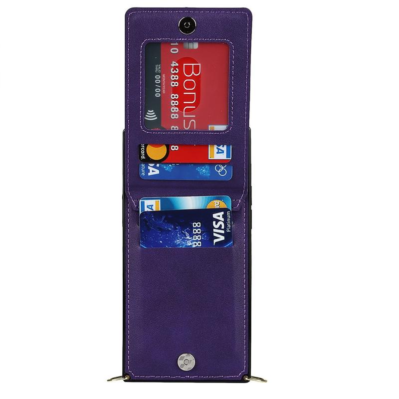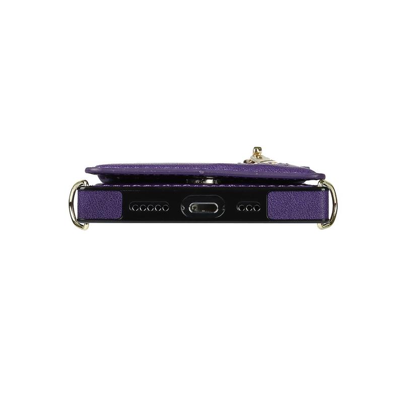 Coque hybride iPhone 11 avec portefeuille et dragonne - Violete