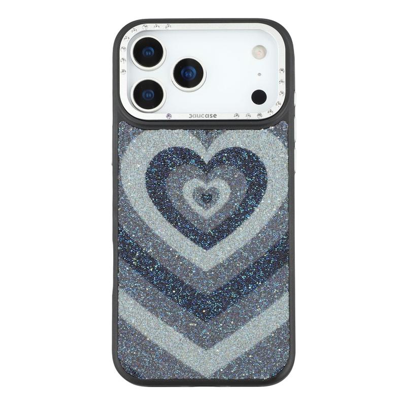 Jaucase Coque hybride magnétique avec motif de coeur pour iPhone 17 Pro Max - Polyuréthane + TPU + PC avec cadre de lentille en strass