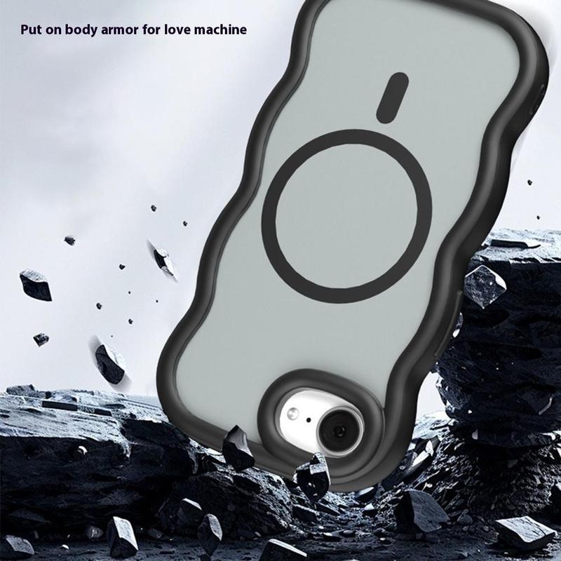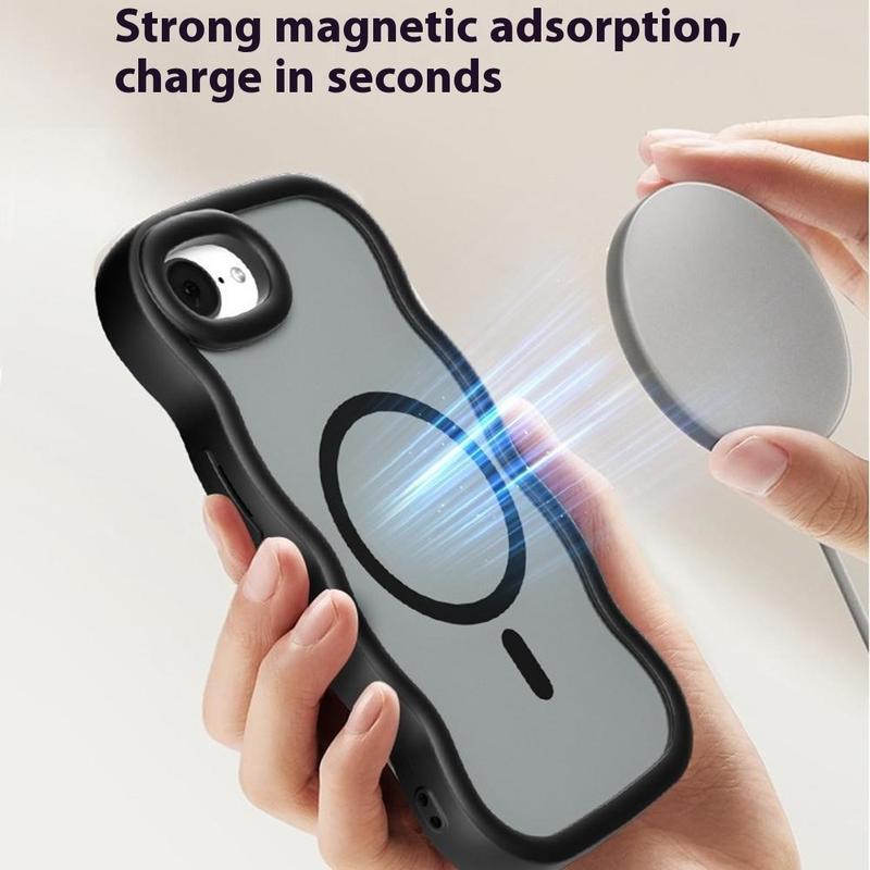 • Coque hybride magnétique bord d'onde pour iPhone 16e - Coque de protection TPU + PC compatible MagSafe