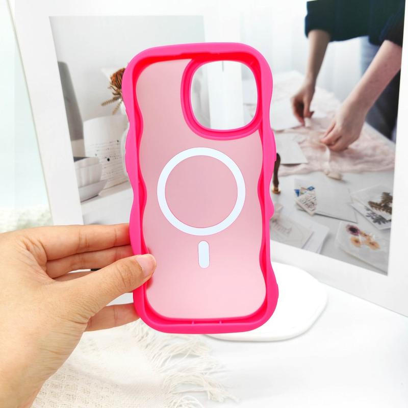 Coque hybride magnétique iPhone 16 Pro bord d\'onde - Rose vif