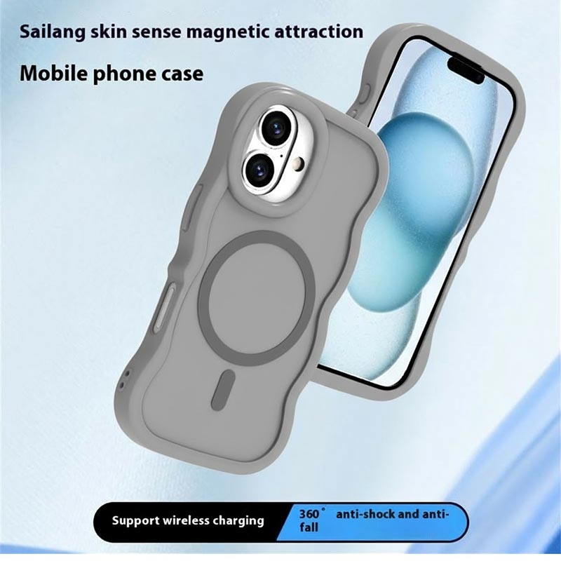 Coque hybride magnétique iPhone 16 bord d'onde - Grise